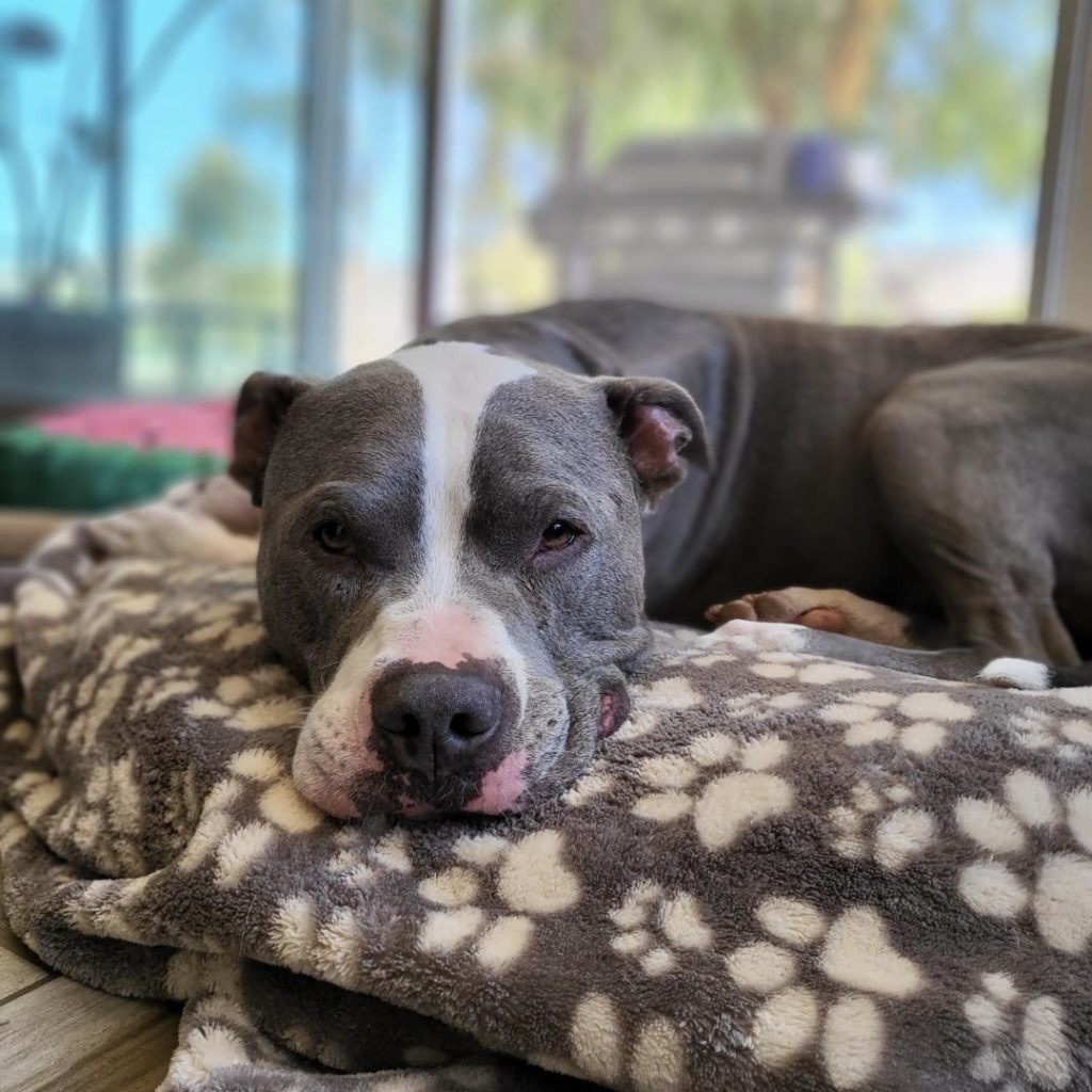 Our senior Tahoe has ongoing medical issues that make him a prime candidate for our forever foster program. One issue he has is chronic ear infections. Because his ears are cauliflowered, there are pockets over the ears that result in bacterial growth that has been resistant to medication. He requires regular ear drops and a strict ear wash regimen. More seriously, Tahoe suffers from bloody stool. Multiple exams and vet visits later, we learned that Tahoe has a mass just inside his rectum. His overall health and age prohibit medical intervention as he would likely never survive the surgery. His prognosis means he won’t be with us for long, but until then, Tahoe will continue to live life with patience and dignity, on his own timeline. As it should be.